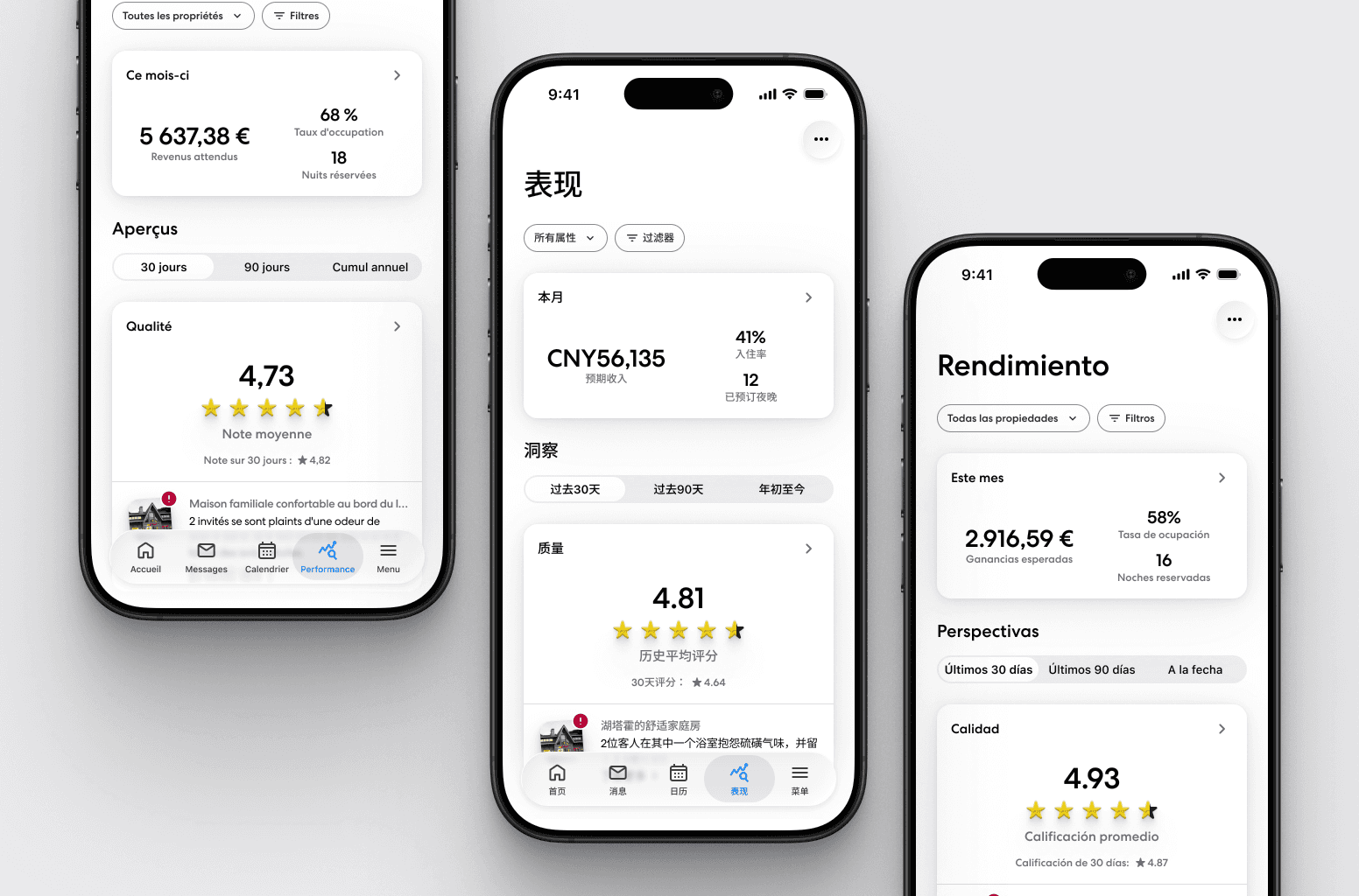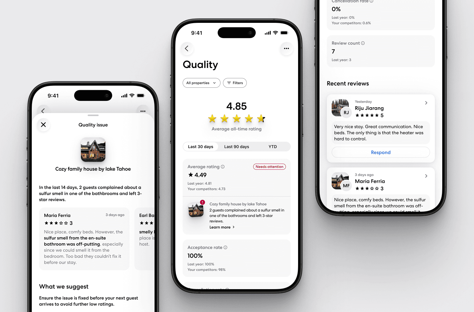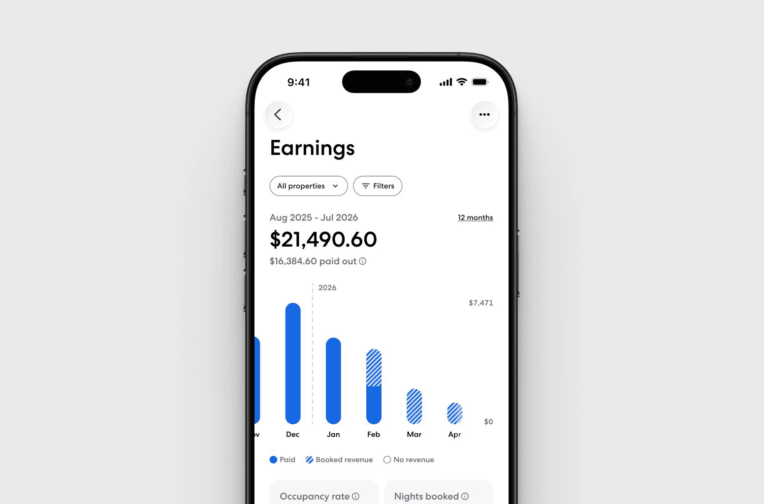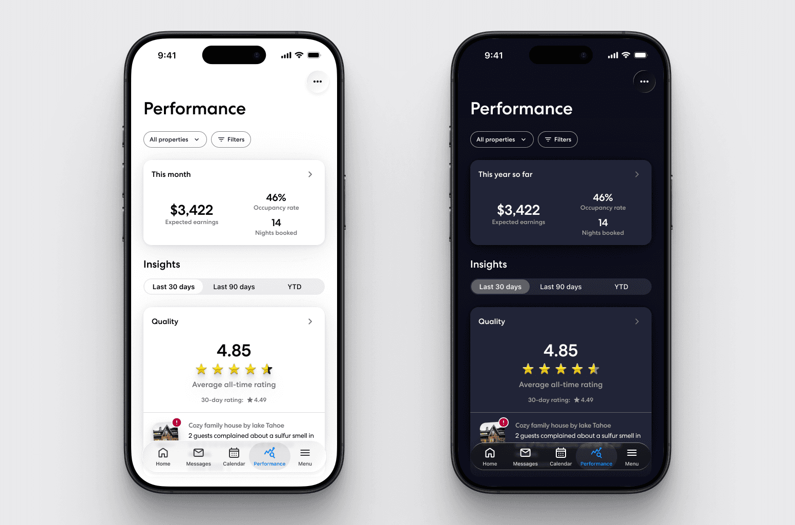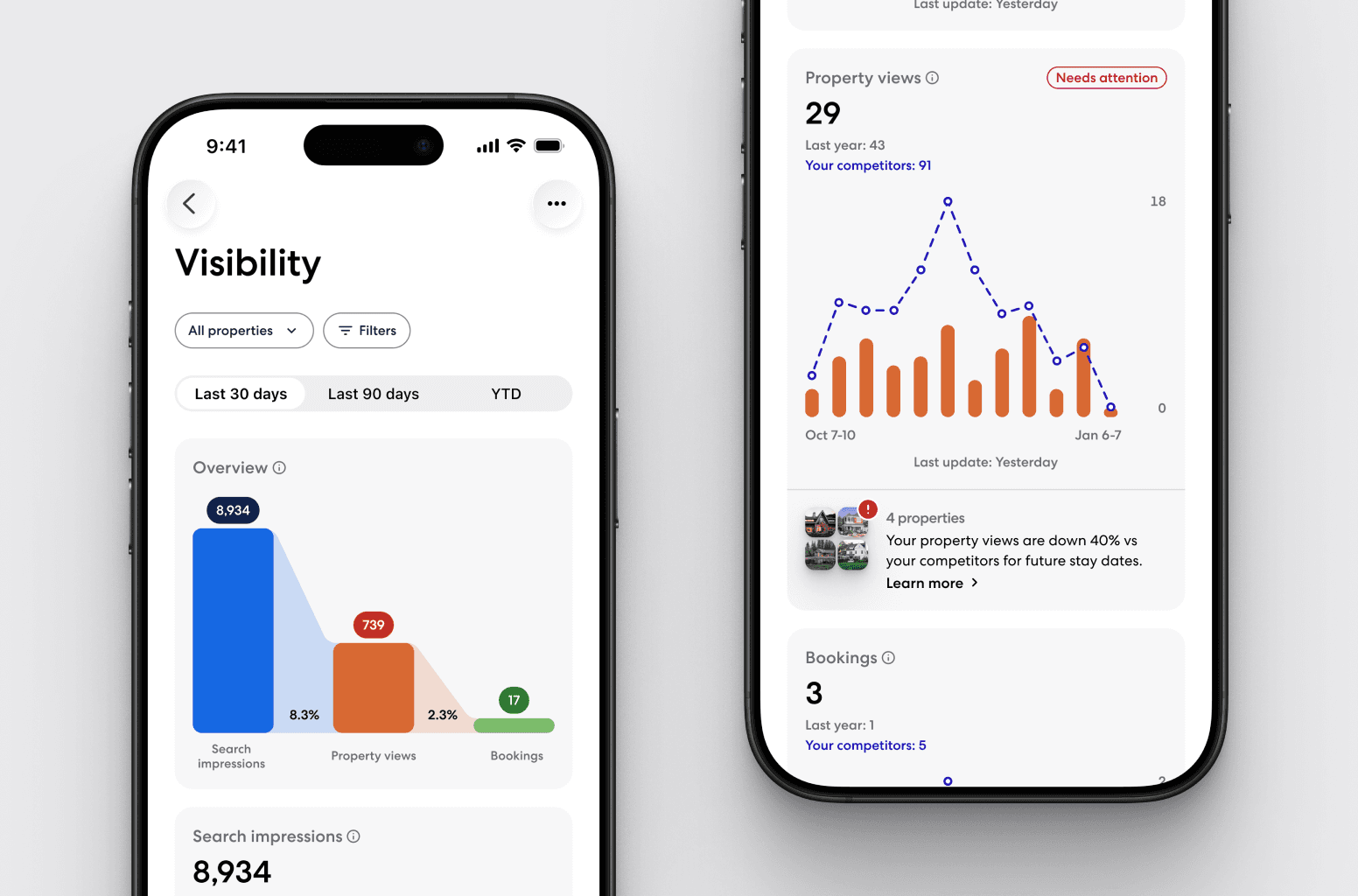 A completely reimagined homepage with the information users were expecting: upcoming stays, performance overview, and their properties.