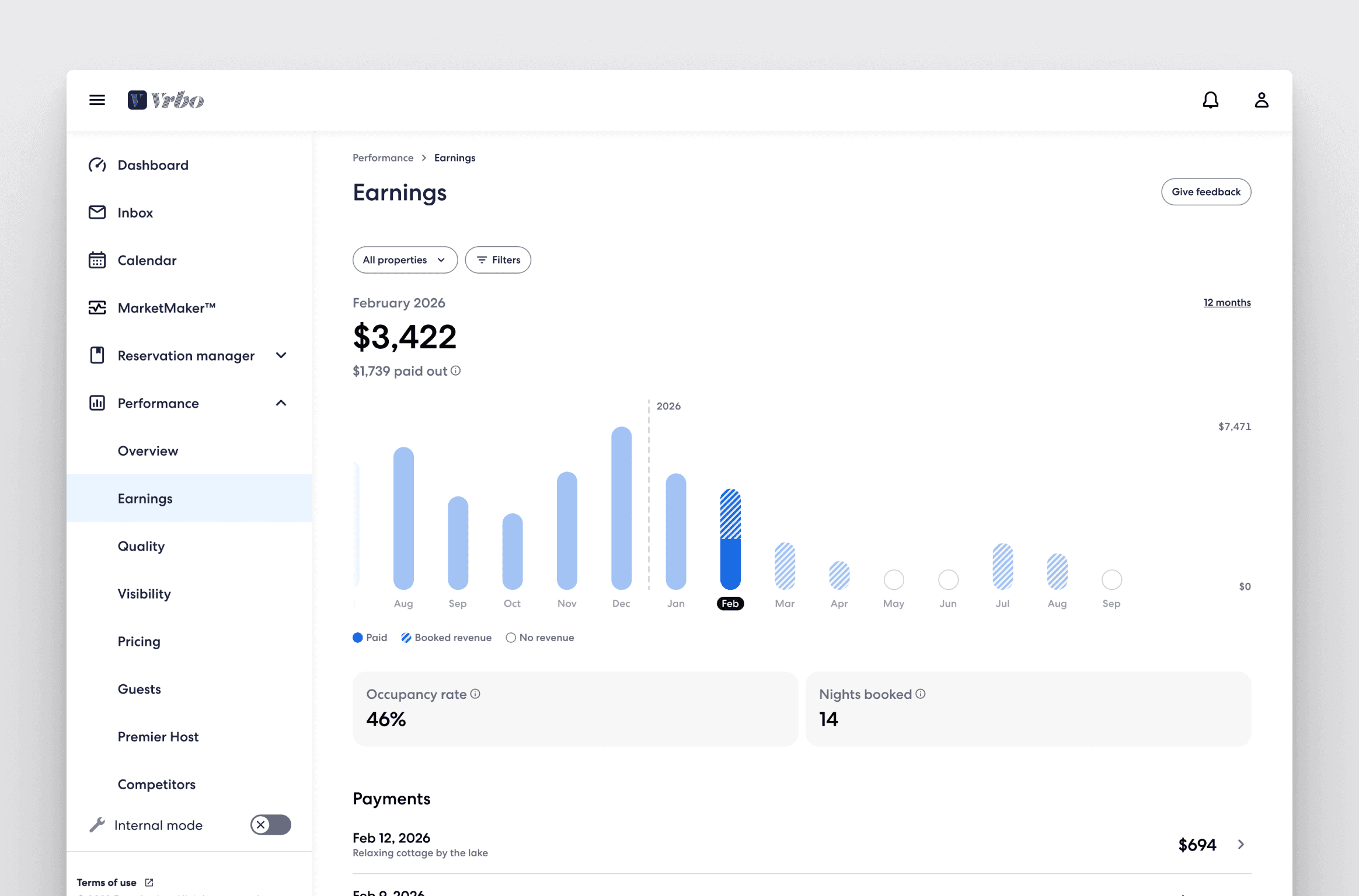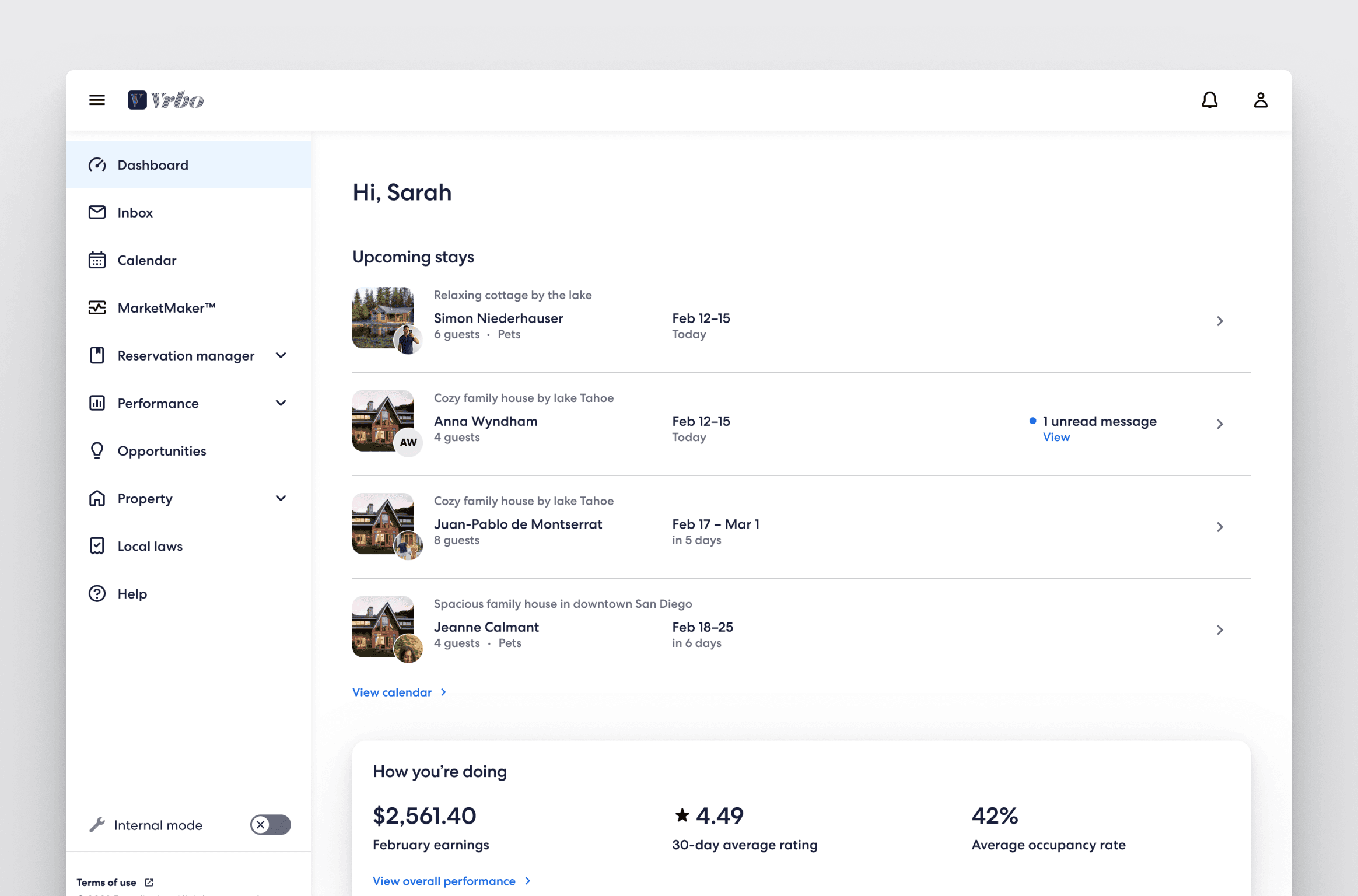 People who own multiple properties have no way to see their overall performance on Vrbo.